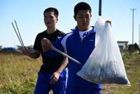 今回は、育ちの確認ということで12個体サンプリングしました。サンプリングした個体は、教室で乾燥させ、形質調査を行います。まずは、草丈、茎の太さ、節の数を測定しました。大きいものは、170cmを超える高さまで生長していました。ソバの収穫までは、もう少しというところですが、今年のソバの種の出来が楽しみになりました。