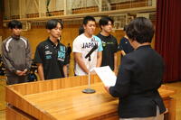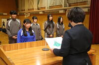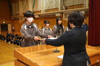 まずは、賞状伝達式です。陸上競技部、自然科学部、写真同好会が登壇し、校長先生から賞状を受け取りました。