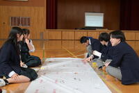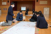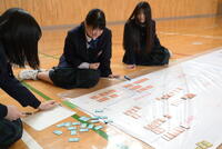 2年生は、究極の選択です。阪神淡路の大震災の教訓から考案された防災クロスロード、究極の選択を考え、仲間と意見を交わし、合意形成を図ります。正解は、ありません。そのときの最適解をみんなで共有し、ゲームを進めていきます。他人の考えと自分の考えは違います。違ってあたり前だということを理解しながら、互いに歩み寄って、思いやりの共通解を共有することの大切さを学びました。