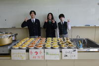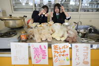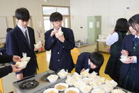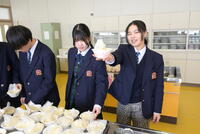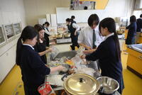 2年生は、炊き出しです。先日、家庭科の実習で防災食を学んだ2年生。みんなで協力して全校生徒分の炊き出しにチャレンジしました。メニューも盛りだくさん、4種類のパスタ、肉じゃが、わかめスープ、ご飯、蒸しパンです。すべてビニール袋で作り、湯で煮るだけという物でしたが、どれもとても美味しくできあがりました。人気メニューは、おかわりもしてくれるほど。2年生の頑張りが、キラリと光りました。