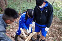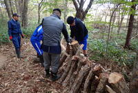 10月に入り、秋のキノコが発生してきました。今日は、キノコの管理の一環として、仮伏せしたほだ木を本伏せする作業です。この春に植菌したシイタケのほだ木を21本、ナメコを26本、本伏せしました。
