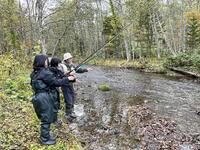 10月18日(土)日差しも差し込み、秋の紅葉がとてもきれいな忠類川の支流でオショロコマのサンプリングを行いました。7月に実施するはずだったサンプリング、やっと実現できました。
