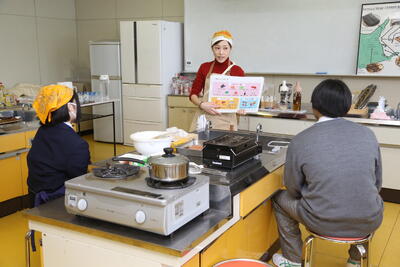 まずは、出汁を学びます。羅臼昆布、根室海峡のホタテ、中標津のシイタケ、標津の鮭節から取る出汁を味わいました。美味しい出汁がこの地域の食材で作れることを学びました。また、出汁の掛け合わせでうまみが何倍にも広がることも教えていただきました。