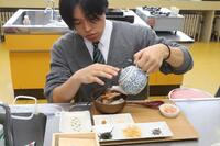 本日のメインは、2年生が手作りした山漬けです。鮭を塩蔵し、うまみを最大限に濃縮した山漬けは、お茶漬けとの相性はぴったり。こんがり、じっくり焼き上げて、炊きたてのご飯にのせれば準備完了。好きな出汁を自分好みに掛け合わせてお茶漬けにしました。一口食べただけで、出汁のうまみに山漬けのうまみが重なり、笑顔があふれました。