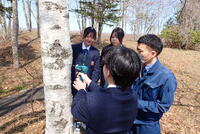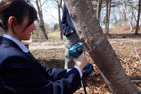 4月10日(金)自然環境系2年生の授業が始まりました。第1回の授業は、・・・「樹液の採集」です。まだ出るかもしれないということで、サトウカエデで挑戦しました。が、しかし、もう終わったようです。そこで、シラカバで挑戦しました。
