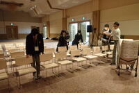 約300席のお客様用の椅子を丁寧に並べることからスタートし、映像のお手伝い、アナウンスや会場案内、流れ星さんのアテンドの打ち合わせを念入りに行います。