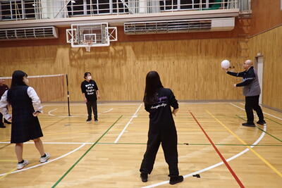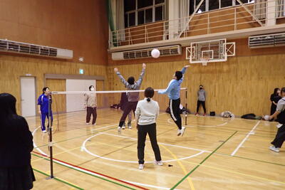 その後、ソフトバレーボール大会を保護者の皆さんと教員で行いました。優勝チームのお米券の賞品をかけて熱い戦いが繰り広げられました。優勝チームいい笑顔です!