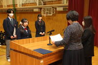 次に、福井校長先生より、「後期に入り、部活動やたくさんの良い報告を聞くことができた。また、11月に行われた防災学校では1年生・生徒会の発表を受け、防災リーダーとして標津町に貢献できるような有意義な1日になった」と振り返りました。「冬季休業は、自分の言動を振り返り、よりよいスタートが切れるよう準備期間にしてほしい」とお話を頂きました。