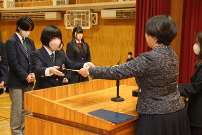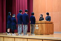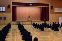 その後、生徒指導部長から3年生は自動車学校、冬季休業明けはすぐにテスト期間になること、1・2年生は冬季休業中の服装・髪型の乱れがないよう、身だしなみを整えまた元気に会うことができるように、とお話をいただきました。