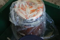 塩蔵は、山漬けの所以でもある塩をしたサケに重しをかけて脱水するという工程です。今年のサケは、身が柔らかく、しっかり脱水するまでやや時間がかかりました(2週間)。そして、ようやく塩抜き作業が始まりました。