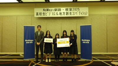 12月18日(木)釧路プリンスホテルで行われた「NoMaps釧路・根室2025 高校生ビジネス&地方創生コンペティション」に3年生4名が出場し、”みらい賞”を受賞しました!